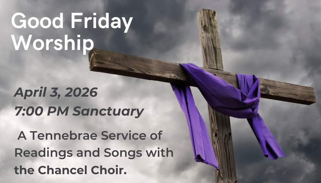A tennebrae service with readings and Chancel Choir at 7:00 PM.